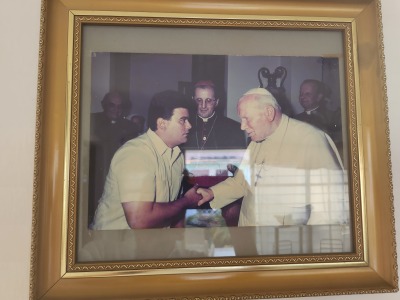 This is a casa I stayed at one night. The picture below is of the guy sitting on the porch meeting the Pope in his younger days.